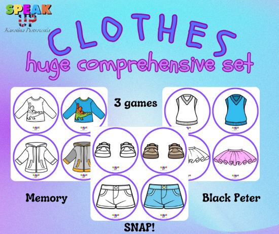 👚2 rodzaje worksheets (pierwsze do odwzorowywanie rysunków i nazywanie ubrań - 6 kart, a drugie, łatwiejsze, to dokańczanie kolorowania i nazywanie ubrań - 8 kart)