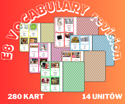 Set dzięki któremu mamy możliwość nauki, powtarzania, drillowania słownictwa niezbędnego do Egzaminu Ósmoklasisty.