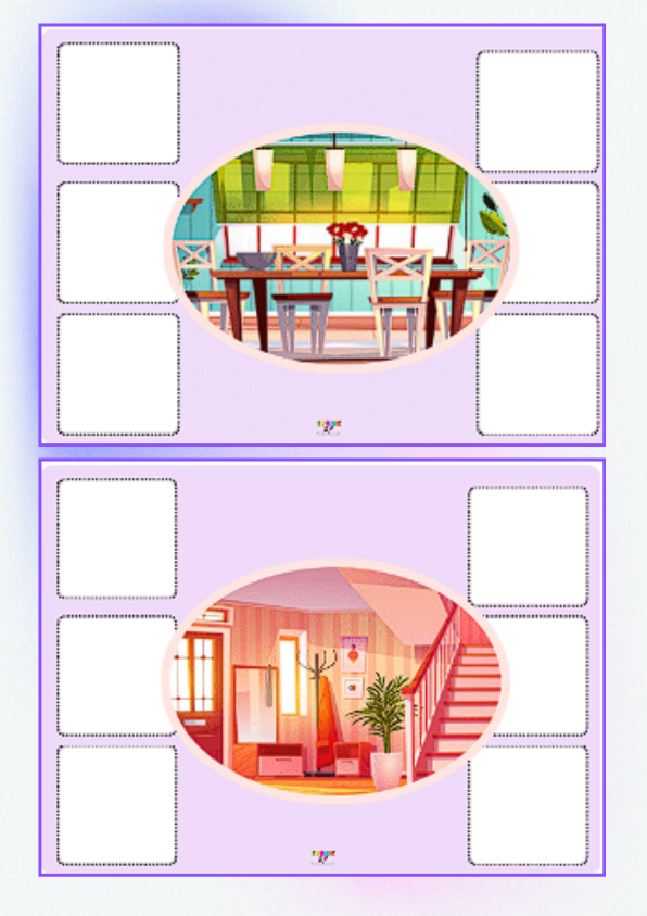 𝟕𝟎 flashcards i wordcards z nazwami pomieszczeń i sprzętów, które w nich znajdziemy. Starałam się nie używać tylko tych, które dzieci znają już dobrze, ale urozmaicić wachlarz słownictwa