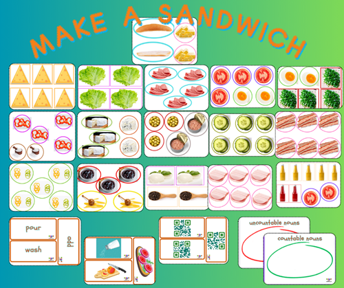 🥪Wordcards, flashcards oraz QR codes cards z podstawowymi czasownikami, które wykonujemy robiąc kanapkę