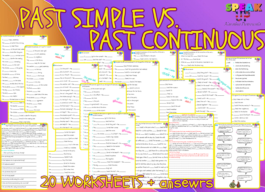 ✳️20 różnorodnych worksheetów (𝐧𝐢𝐞𝐦𝐚𝐥 𝟒𝟎𝟎 𝐩𝐫𝐳𝐲𝐤ł𝐚𝐝ó𝐰), z podziałem na 𝐏𝐚𝐬𝐭 𝐒𝐢𝐦𝐩𝐥𝐞, 𝐏𝐚𝐬𝐭 𝐂𝐨𝐧𝐭𝐢𝐧𝐮𝐨𝐮𝐬 oraz 𝐦𝐢𝐱 𝐨𝐛𝐮