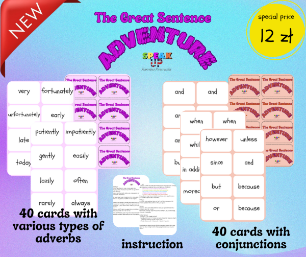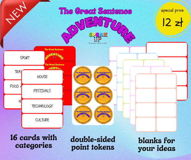 W wielkim skrócie: uczniowie dostają po 7 losowych kart i muszą z nich układać zdania w danej kategorii. Za użycie słów otrzymują punkty (punktację opisałam w instrukcji).
